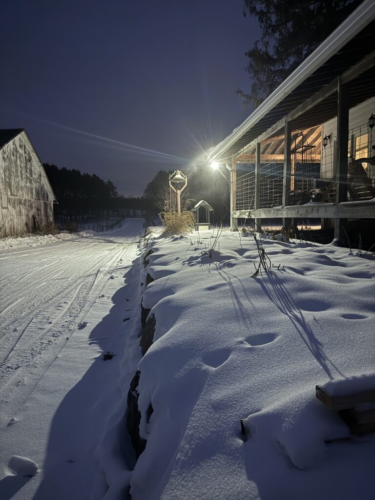Funny how the small things from childhood can shape you…. Reading that book to Max on a frigid night, snuggled up in bed, having been out to feed the dogs, get the eggs, and shoo my finicky sheep into the barn, I felt akin to the Tomten’s nightly doings, and I realized that my interest in nocturnal farm chores may have its roots in that picture book.